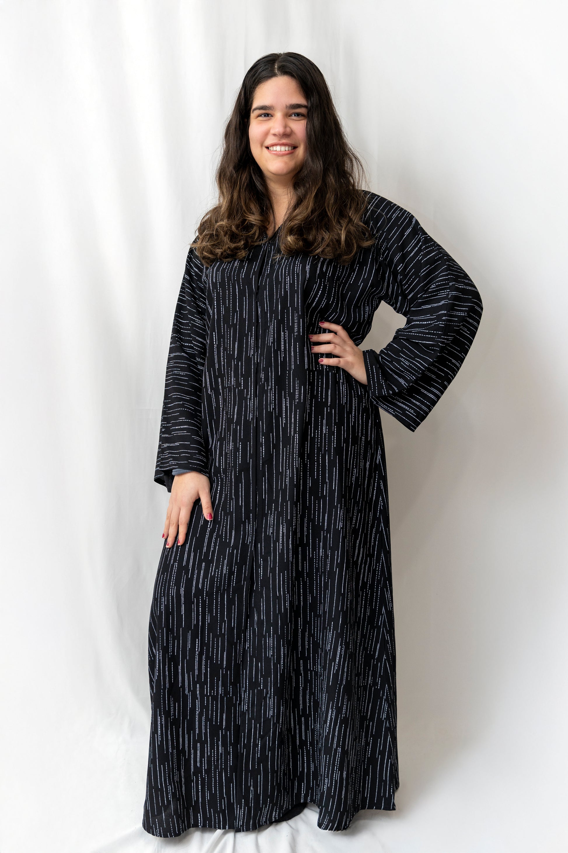 Lightweight abaya with clasps to open and close